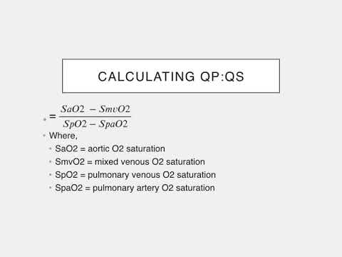 Calculation of blood Flow Qp O2 consumption PV O2 content PA O2 content Qs O2 consumption SA O2 content MV O2 content. Qs systemic oxygen consumption Pulmonary Vein oxygen content - Mixed. Measurement of systemic and pulmonary blood flow and QPQS ratio using.